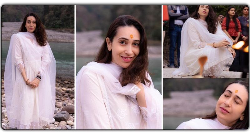 दरअसल करिश्मा कपूर इन दिनों ऋषिकेश की खूबसूरत वादियों में क्वालिटी टाइम स्पेंड करने के लिए पहुंची है जहां से उन्होंने अपने प्रशंसकों के साथ कुछ दिलकश तस्वीरें पोस्ट की है| सोशल मीडिया पर करिश्मा कपूर की यह तस्वीरें सामने आते ही जमकर वायरल हो गई है और इन तस्वीरों पर एक्ट्रेस के फैन दिल खोलकर प्यार बढ़ता रहे हैं|सामने आई तस्वीरों में करिश्मा कपूर वाइट कलर के सूट में ब्यूटीफुल दिख रही है | करिश्मा कपूर ने अपने माथे पर तिलक लगाया है और बालों को खुला रखा है |