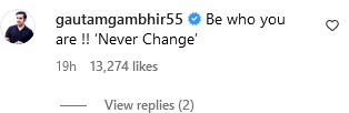 अफगानिस्तानी गेंदबाज के इस पोस्ट कर गंभीर ने प्रतिक्रिया देते हुए लिखा कि, ‘जैसे हो, वैसे रहो, कभी मत बदलो.’ लखनऊ सुपरजायंट्स के मेंटॉर ने कभी मत बदलो पर ‘इनवर्टेड कॉमा’ भी डाला है. गंभीर ने ऐसा कह कर एक तरह से उन लोगों पर निशाना साधने की कोशिश की है जो विराट कोशाली से हुए विवाद में नवीन उल-हक को गलत ठहरा रहे हैं. लेकिन गंभीर के सपोर्ट के बाद नवीन ने पोस्ट कर रिप्लाई में ‘सर’ लिखा है. गंभीर और नवीन की ये तस्वीर और कॉमेंट फैन्स के बीच चर्चा का विषय बन गया है.