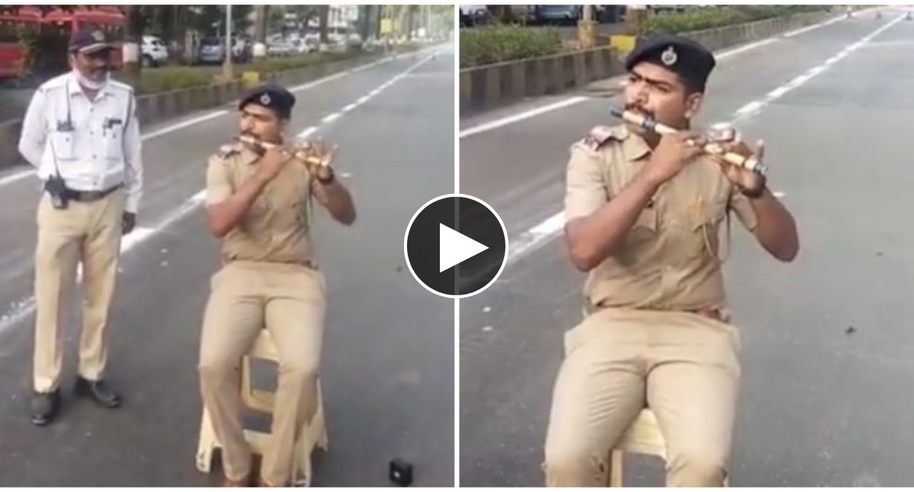 रोड पर बैठकर पुलिसकर्मी ने बजाई सुरीली बांसुरी की धुन