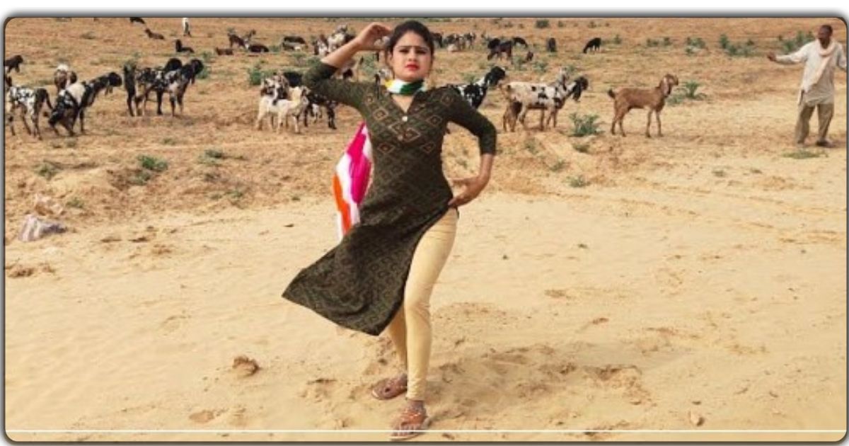 वीडियो में आप देख सकते हैं कि एक लड़की सूट पहने और रंग-बिरंगा दुपट्टा लिए नजर आ रही हैं। वह राजस्थान की धरती पर खड़ी हैं, और उसके पीछे आप बकरियों को चढ़ते हुए देख सकते हैं।