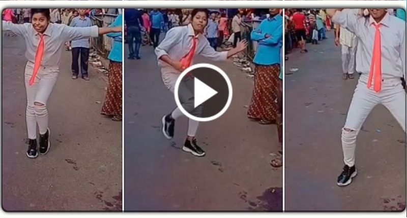 एक लड़की स्कूल ड्रेस में है सड़क पर बहुत ही कमाल का डांस