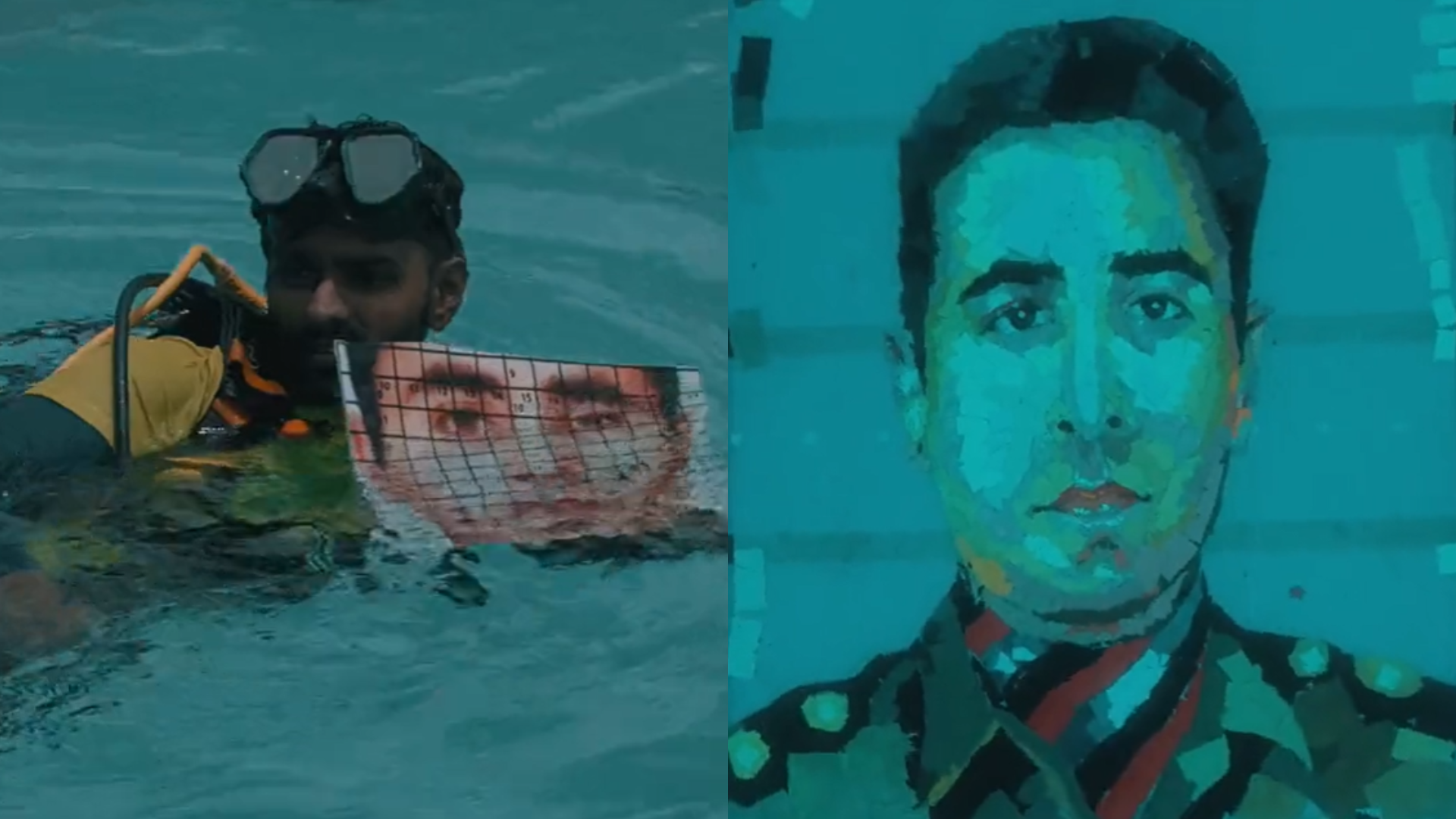प्रेस सूचना ब्यूरो द्वारा ट्विटर पर पोस्ट की गई एक क्लिप में स्कूबा गोताखोरों को टाइलों का उपयोग करके एक स्विमिंग पूल के आधार पर चित्र स्थापित करते हुए दिखाया गया है। ड्रोन कैमरे से शूट किए गए दृश्य कैप्टन बत्रा के चित्र को पूरी तरह से दिखाते हैं।