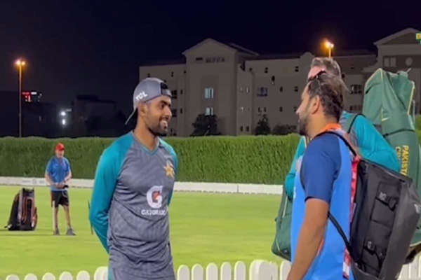 रोहित-बाबर की मुलाकात का जो वीडियो सामने आया है, उसमें भारतीय कप्तान ने बाबर से यह कहा, ‘भाई शादी कर लो. रोहित के ऐसा कहने पर बाबर भी दंग रह गए. कुछ देर ठहरने के बाद उन्होंने जवाब दिया, नहीं, अभी शादी नहीं करूंगा.’