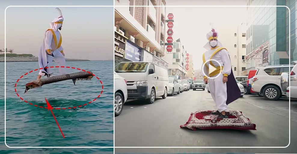 कई बार हम यह भी सोचते हैं कि इस कहानी में जो कुछ था वह सब सच होगा? लेकिन अब दुबई में एक ऐसा नजारा देखने को मिला जिससे आपकी यह कल्पना हकीकत बनती नजर आई। जहां एक शख्स सड़क पर और पानी के अंदर अलादीन की जादुई चटाई पर कमाल के स्टंट करता नजर आया, जिसे देखकर वहां मौजूद लोग हैरान रह गए.