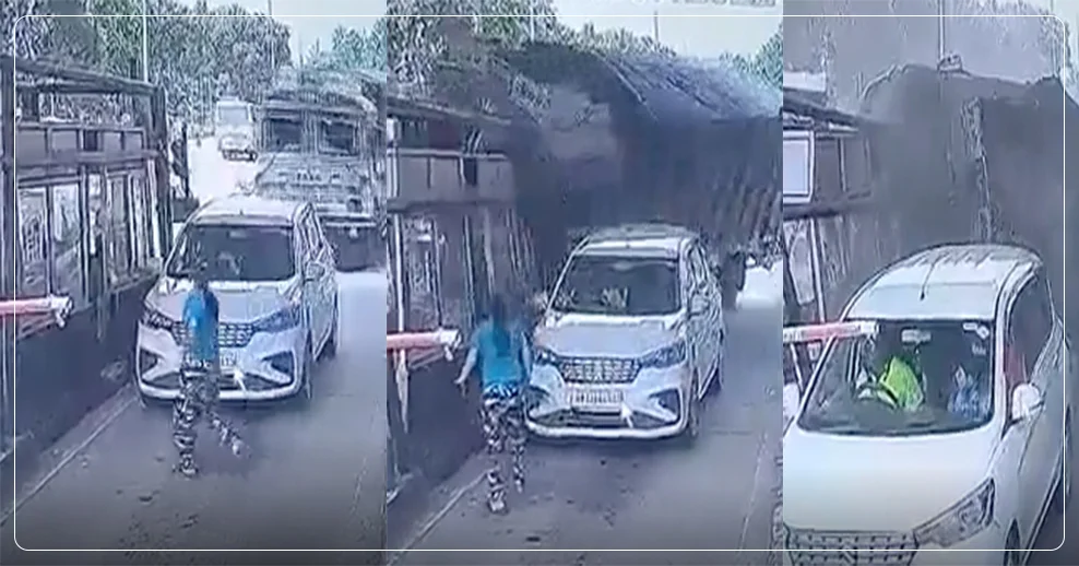 इस वीडियो में देखा जा सकता है कि एक ट्रक तेज रफ्तार से आता है और टोल प्लाजा से टकरा जाता है. उसी समय एक कार ट्रक के सामने खड़ी है। ट्रक की चपेट में आने से एक कर्मचारी टोल प्लाजा के अंदर फंस गया। पास खड़ी एक लड़की जब यह देखती है तो बेफिक्र होकर अंदर चली जाती है।