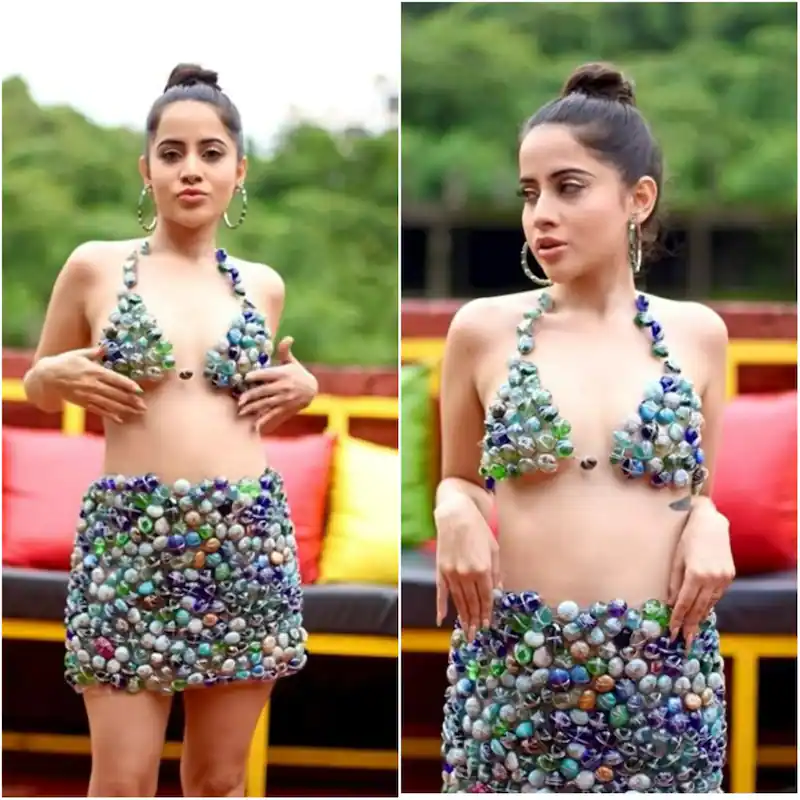 उर्फी जावेद ने शरीर पर लपेटे पत्थर